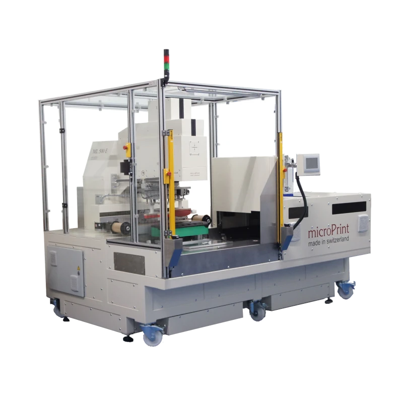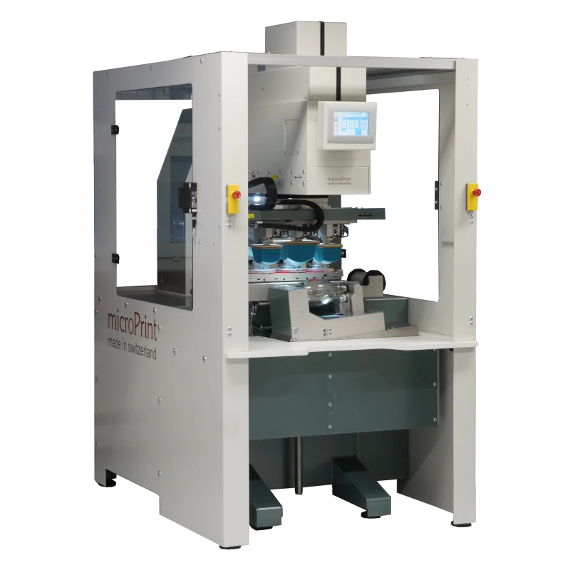 Die ML-Linie kann als Handarbeitsplatz mit Sicherheitszelle oder in eine Anlage integriert werden. Sie eignet sich für komplizierte Teile mit vielen, an unterschiedlichen Positionen gedruckten Bildern sowie für Anwendungen, die eine hohe Präzision im gesamten Druckablauf erfordern (z.B. bei mehrfarbigen Bildern mit feinen Strukturen oder beim Rasterdruck). Ideal für die parallele Bedruckung mehrerer Teile in einer Spritzgussmaschine.Sensible Druckabläufe (z.B. gedruckte Elektronik, lichtdichter oder transluzenter Druck, Bedruckung rauer Oberflächen oder Glas) lassen sich optimal mit dem elektrischem Hub bewerkstelligen.